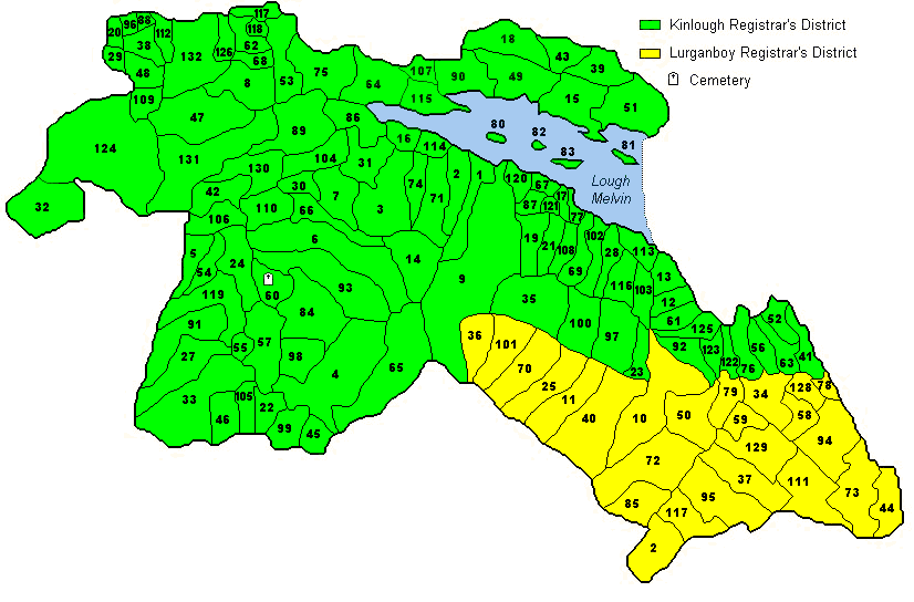 | 15 | Askill | 48 | Derryduff | 81 | Inishkeen Island (L. Melvin) | 114 | Rosclogher |